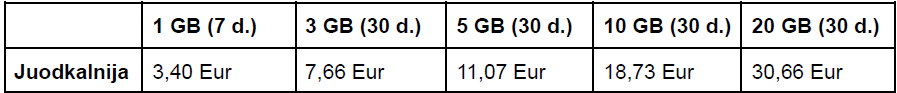 • 1000 GB interneto už 20 eurų (galioja 30 dienų).